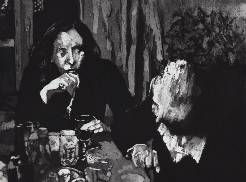 «Sobremesa», Pablo Flaiszman (2013, aguafuerte-aguatinta).